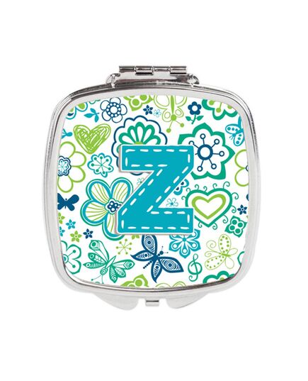 Carolines Treasures CJ2006-ZSCM Letter Z Flowers & Butterflies Teal Blue Compact Mirror