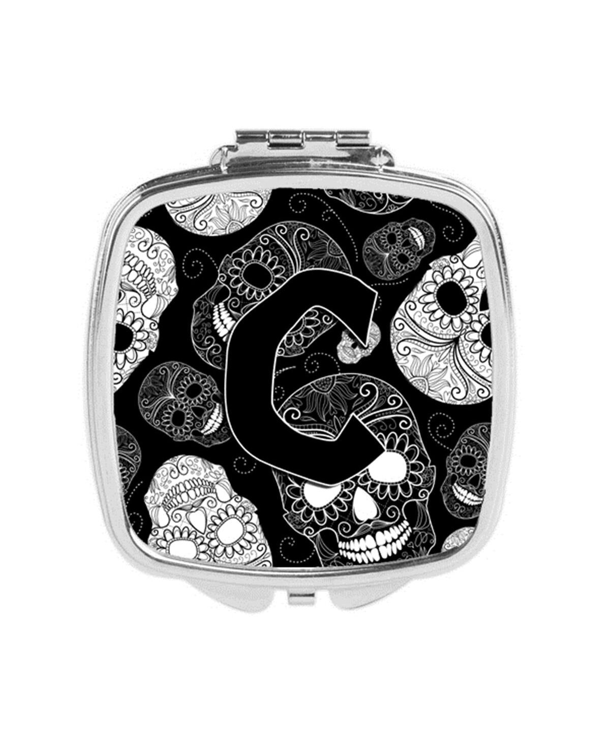 Carolines Treasures CJ2008-CSCM Letter C Day of the Dead Skulls Black Compact Mirror
