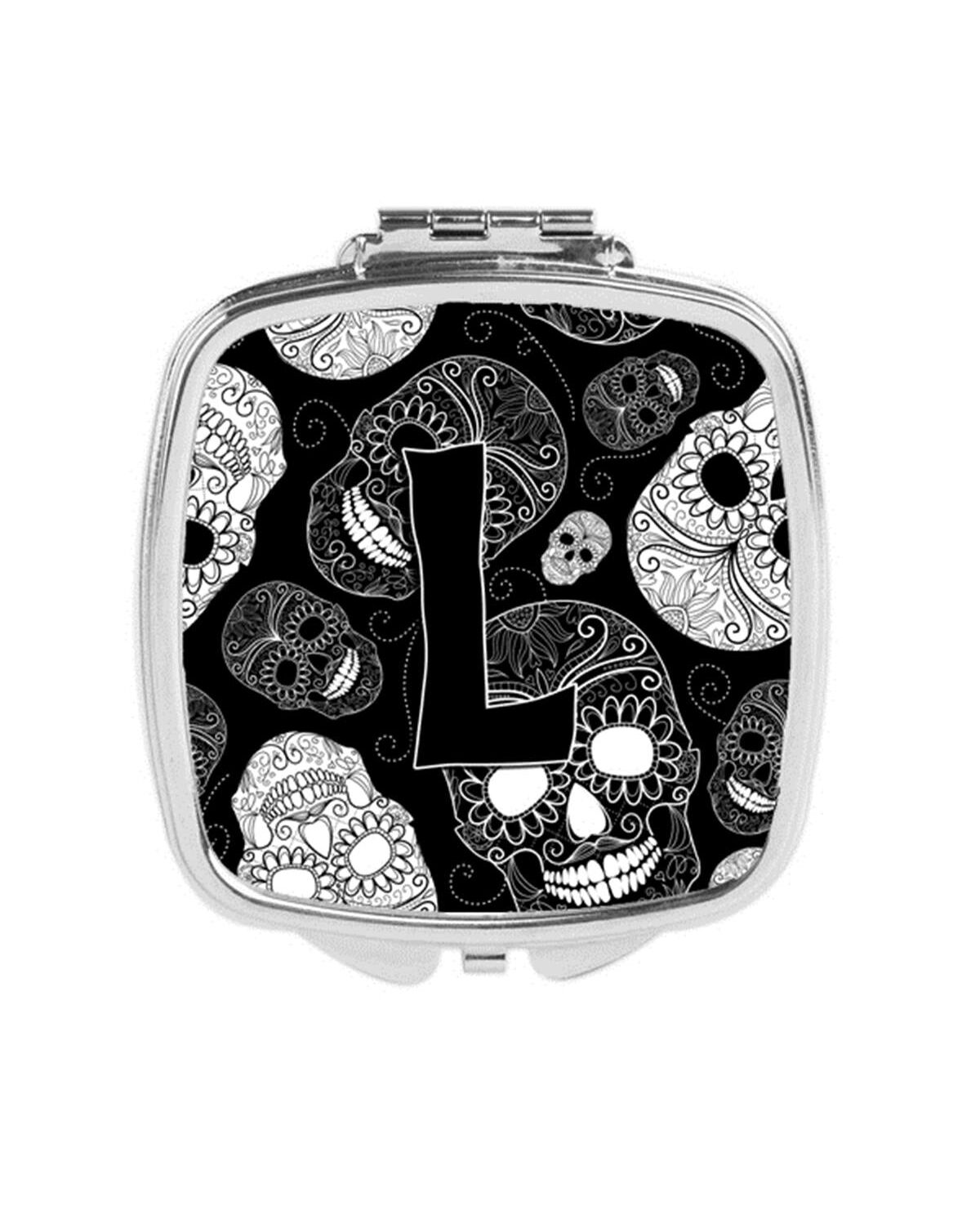 Carolines Treasures CJ2008-LSCM Letter L Day of the Dead Skulls Black Compact Mirror