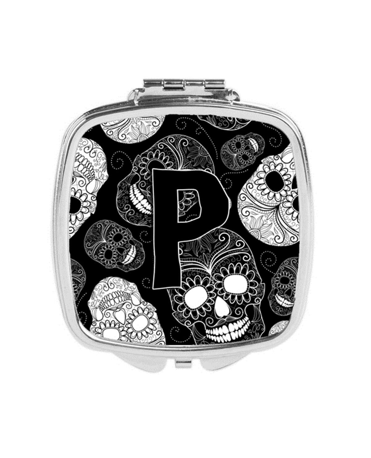 Carolines Treasures CJ2008-PSCM Letter P Day of the Dead Skulls Black Compact Mirror