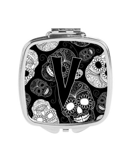 Carolines Treasures CJ2008-VSCM Letter V Day of the Dead Skulls Black Compact Mirror