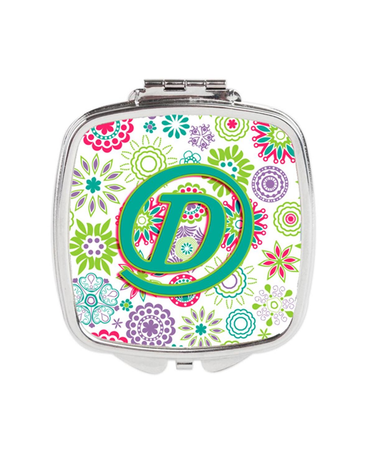 Carolines Treasures CJ2011-DSCM Letter D Flowers Pink Teal Green Initial Compact Mirror
