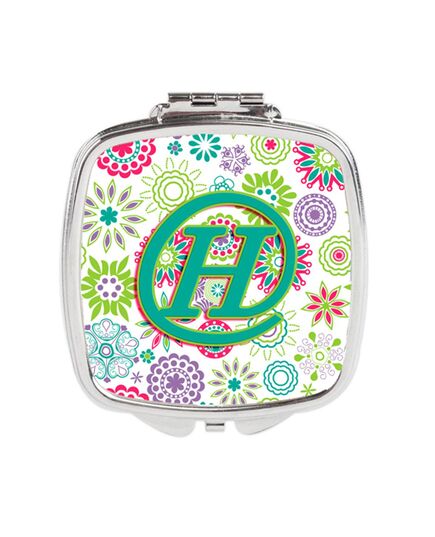 Carolines Treasures CJ2011-HSCM Letter H Flowers Pink Teal Green Initial Compact Mirror