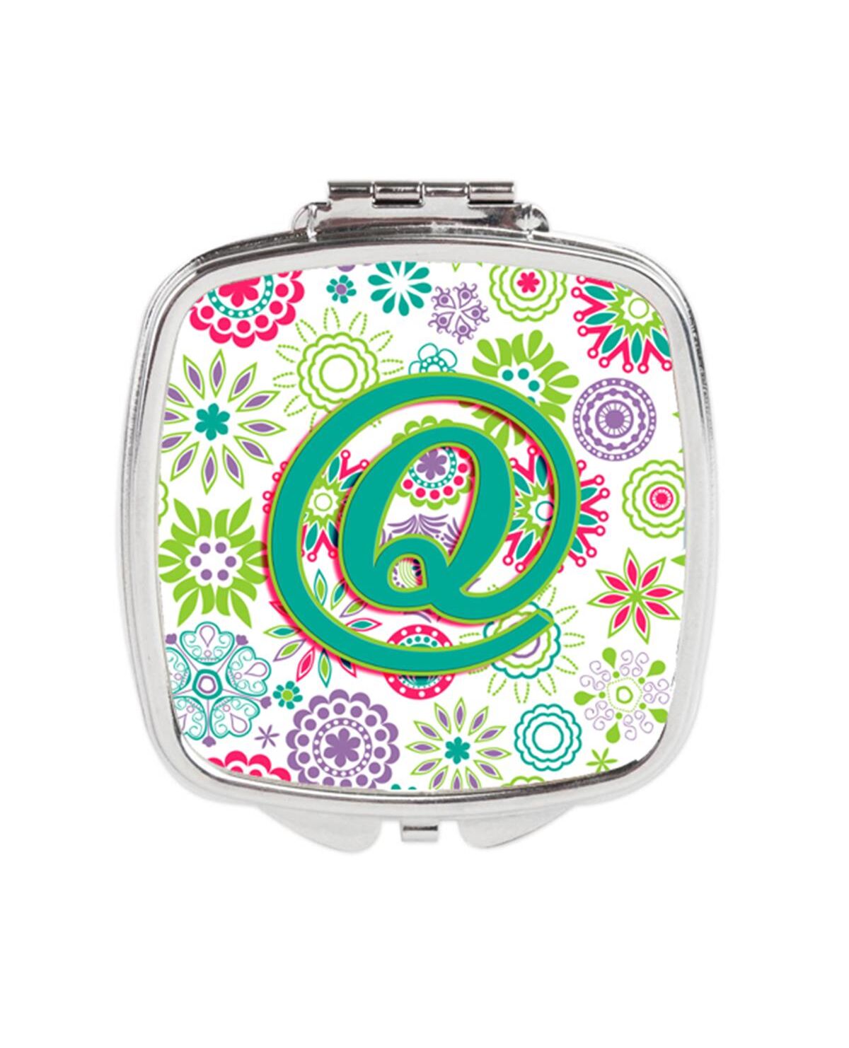 Carolines Treasures CJ2011-QSCM Letter Q Flowers Pink Teal Green Initial Compact Mirror