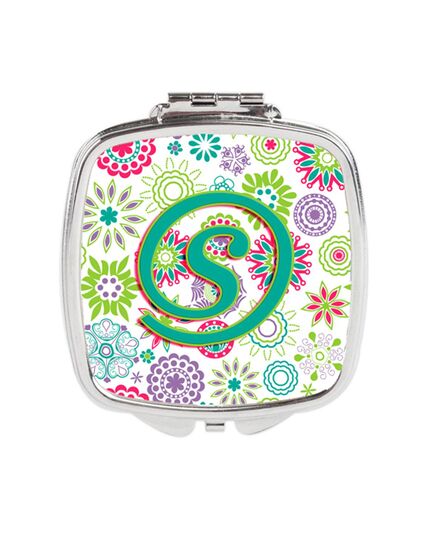 Carolines Treasures CJ2011-SSCM Letter S Flowers Pink Teal Green Initial Compact Mirror