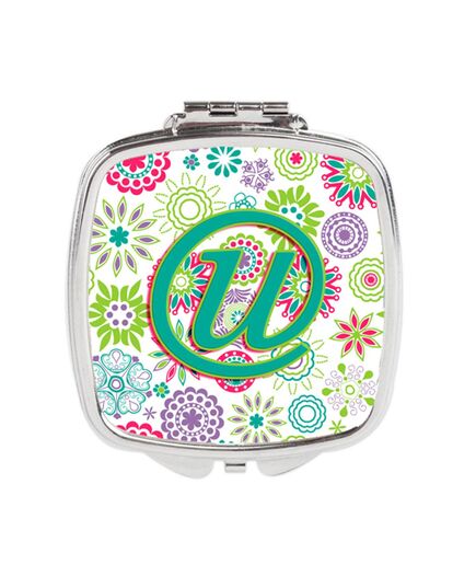 Carolines Treasures CJ2011-USCM Letter U Flowers Pink Teal Green Initial Compact Mirror