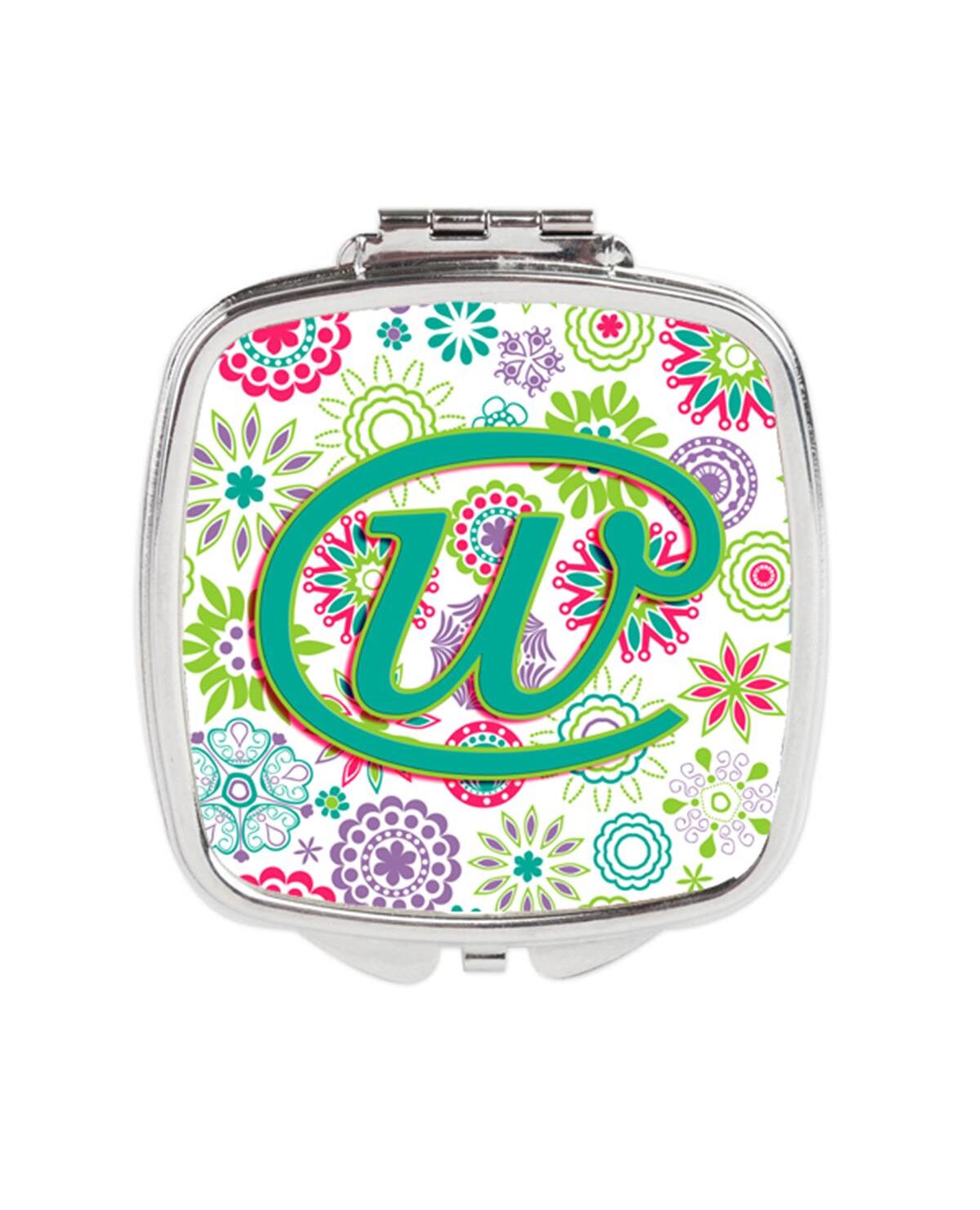 Carolines Treasures CJ2011-WSCM Letter W Flowers Pink Teal Green Initial Compact Mirror
