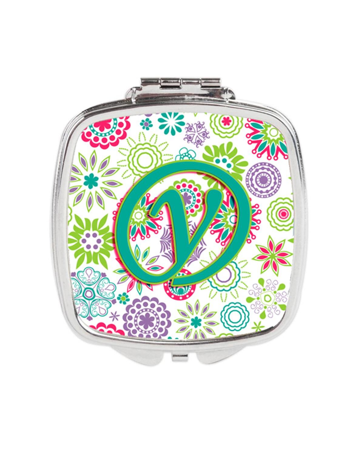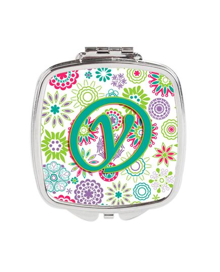 Carolines Treasures CJ2011-YSCM Letter Y Flowers Pink Teal Green Initial Compact Mirror