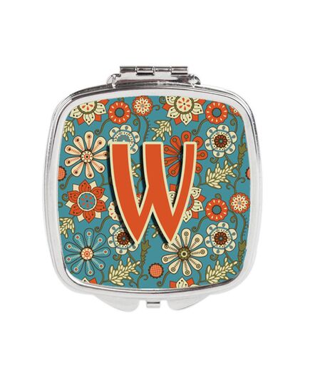 Carolines Treasures CJ2012-WSCM Letter W Flowers Retro Blue Compact Mirror