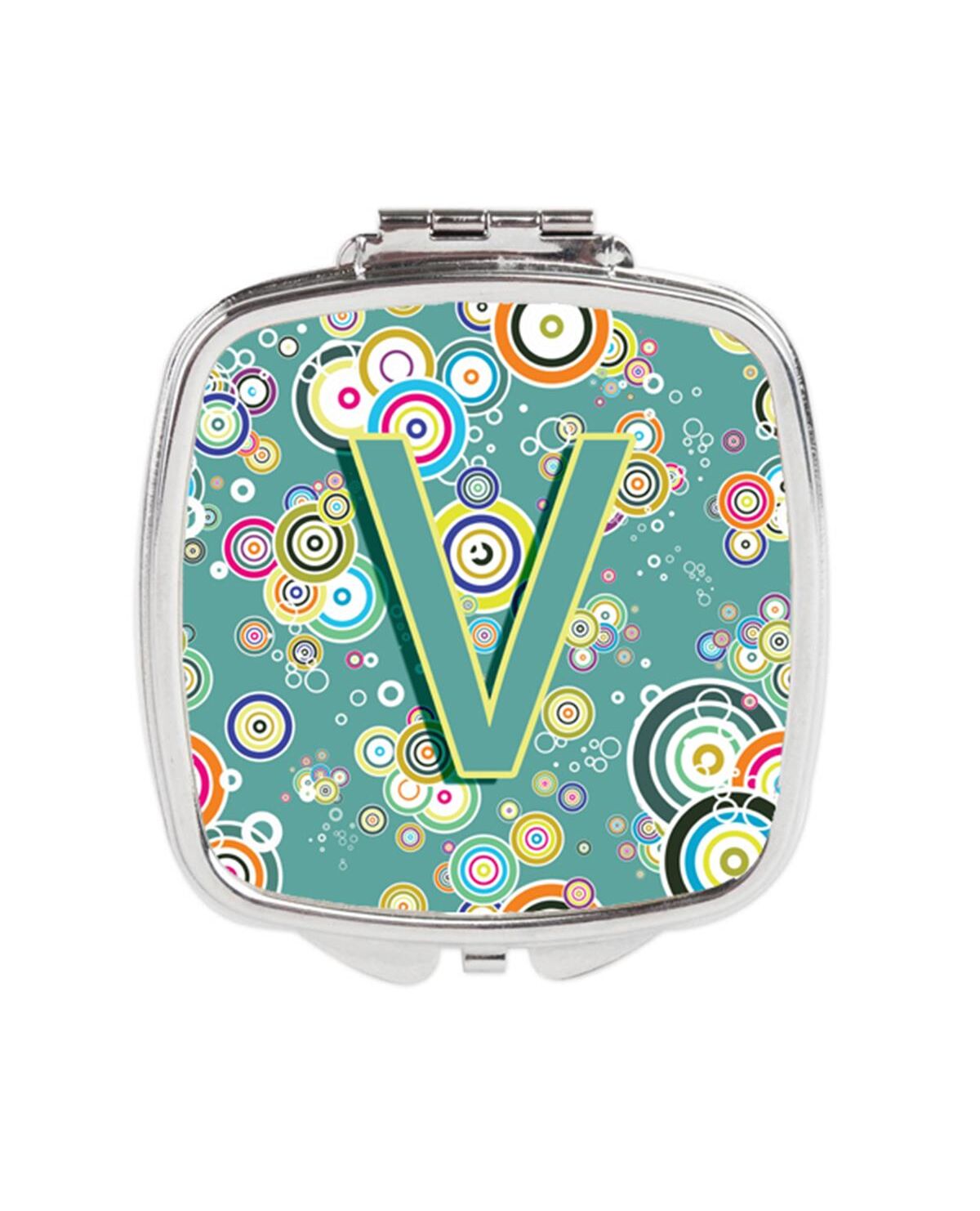 Carolines Treasures CJ2015-VSCM Letter V Circle Circle Teal Initial Alphabet Compact Mirror