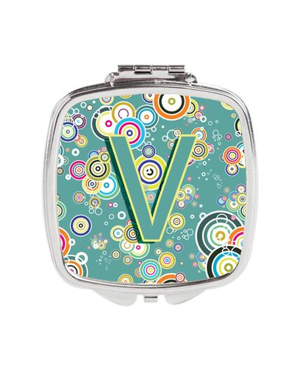 Letter V Circle Circle Teal Initial Alphabet Compact Mirror CJ2015-VSCM - Caroline's Treasures creates artwork products for the garden and home. Most of their raw materials are domestically produced and most of their products are 100% USA made by Caroline's Treasures. They focus on functional artwork and bring in glamour to your home. Features Square Compact Mirror, Rectangle, Silvertone metal, 2.75 inches x 3 inches x .3 inches Artwork on the front and two mirrors inside this great little compact Specifications Weight: 0.35 lbs