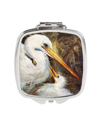 Carolines Treasures JMK1211SCM White Egret Feeding Baby Compact Mirror