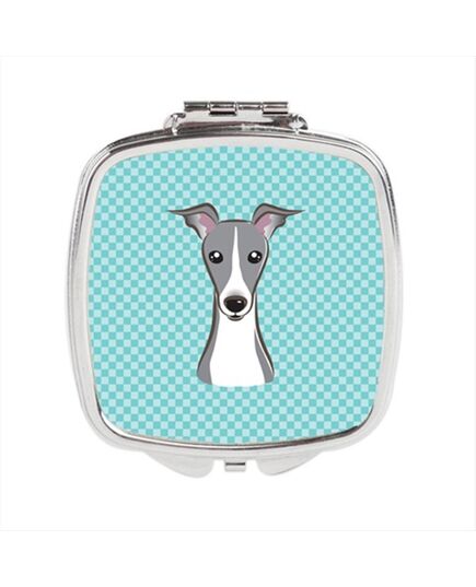 Checkerboard Blue Italian Greyhound Compact Mirror, 2.75 x 3 x .3 In.