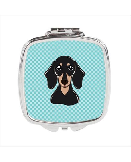 Checkerboard Blue Smooth Black And Tan Dachshund Compact Mirror, 2.75 x 3 x .3 In.