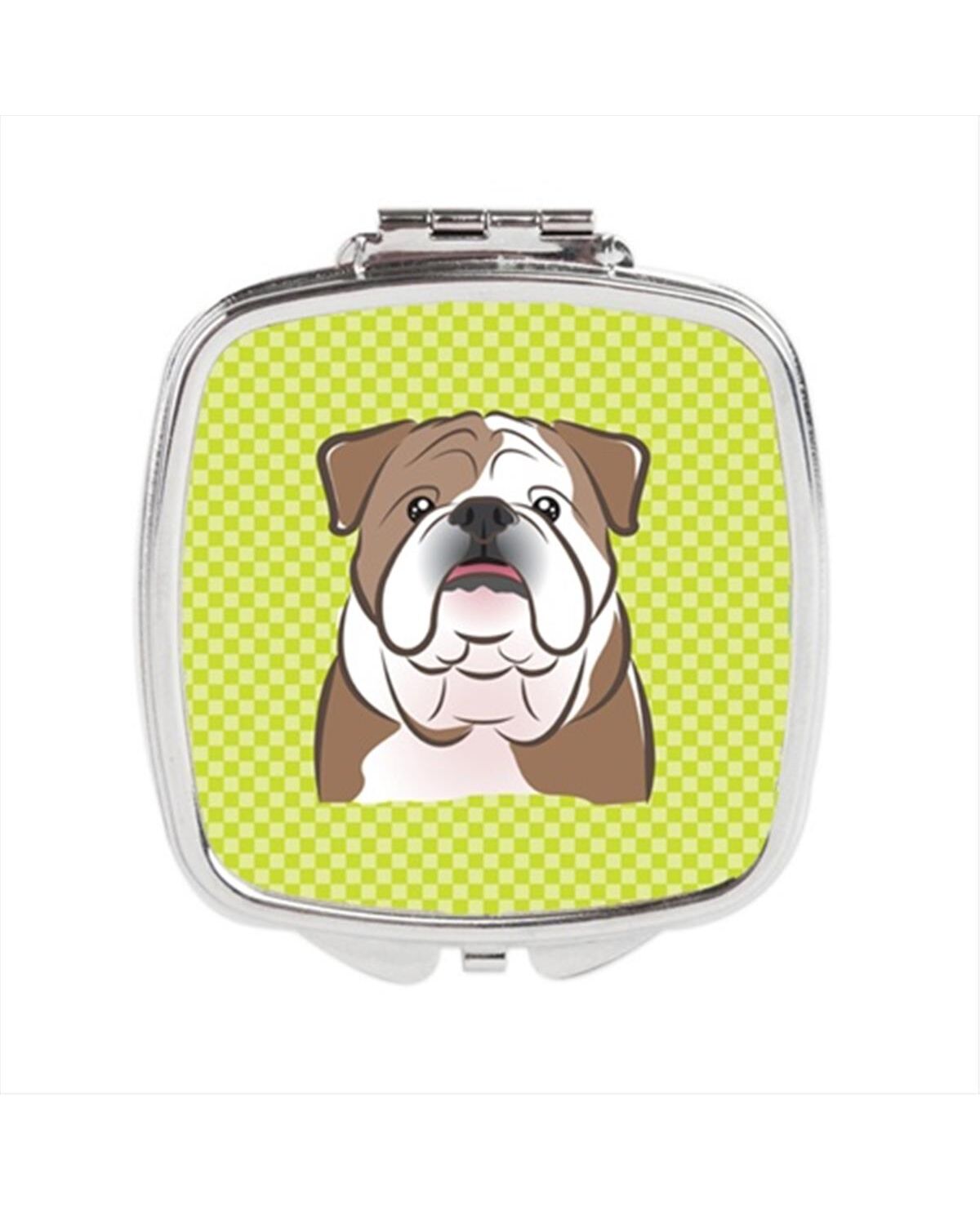 Checkerboard Lime Green English Bulldog Compact Mirror, 2.75 x 3 x .3 In.