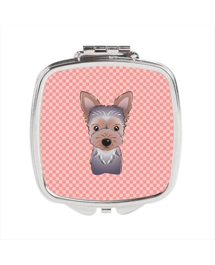 Checkerboard Pink Yorkie Puppy Compact Mirror, 2.75 x 3 x .3 In.