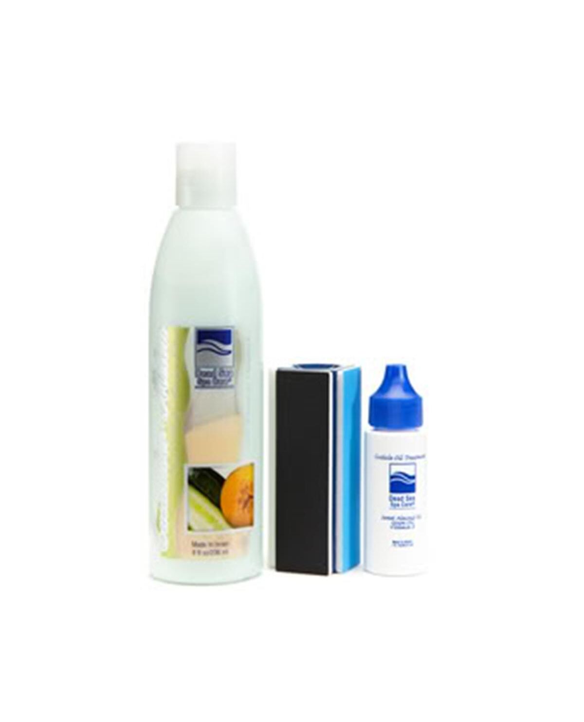 The Dead Sea Spa Care Nail kit is a three step process that will leave your hands and feet looking like you just stepped out of the salon. Dead Sea Spa Care designed a Professional, Patented Nail Buffer that will help bring out the natural shine in your nails in just seconds. After using the Dead Sea Spa Care Patented, Professional Nail Buffer, your nails will look like they have a clear coat of nail polish on them, but the difference is that they will be in their natural, healthy state. The Dead Sea Spa Care Cuticle Oil Treatment will moisturize your nail bed to promote healthy nail growth and our patented, professional nail buffer will leave your nails looking professionally manicured. The Dead Sea Spa Care Hand and Body Massage Lotion will leave your skin feeling silky smooth.Benefits Nail Buffer and Cuticle Oil promotes natural nail growth Nail Buffer and Cuticle Oil help keep nails healthy in their natural state Nail Buffer and Cuticle Oil help stimulate blood flow to the nail Cuticle Oil Treatment moisturizes nail bed Cuticle Oil Treatment heals dry, cracked cuticles Hand and Body Massage Lotion nourishes and prevents redness, peeling, dryness and cracking of the hand skin Hand and Body Massage Lotion intensify healing and cell regeneration with mineral-rich Dead Sea salts Hand and Body Massage Lotion contains numerous beneficial minerals from the Dead Sea Skin typesNormal Skin, Dry Skin, Oily Skin, Combination Skin, Mature Skin, Non-Sensitive Skin, All Skin Types.DirectionsBefore using the nail buffer, remove any nail polish from your nails, wash your hands with water and soap, and dry your hands thoroughly. Pick up the nail buffer by the finger indentions on the ends. Do not palm the buffer in your hand. Any natural oil you have on your hand will be absorbed by the material, and will keep it from working as effectively.If you have ridges on your nail, the blue side will be the first step for you. If not, the black will be your first step, and you can use this blue side as an emery board. If do you have ridges, buff the top surface of the nail firmly for 3-5 seconds from side-to-side. The ridges are unhealthy, and keep the nail from growing. The blue side should be used once a month, if necessary to remove ridges off the surface of the nail.The second step to using the nail buffer is the black side. Buff the top surface of the nail gently with the black side for 2-3 strokes to prepare the nail surface. This side should be used once a week.The final step is the white side. Buff the surface of the nail pressing a little more firmly from side to side for 3-5 seconds with the white side to get the great shine results. The white side should be used once a week or more often if your nail needs a shine lift. (Please note, all Cuticle Oil and Hand and Body Massage Lotion should be applied after using the buffer.)After using the nail buffer, the next step is the Cuticle Oil Treatment. We suggest keeping the Dead Sea Spa Care Cuticle Oil Treatment by your bed side and applying one small drop on each nail and massage it into your cuticle bed whether you used the nail buffer that day or not. This should be a daily treatment, but never buff your nails after applying the Cuticle Oil Treatment because you will ruin the nail buffer.The final step is the Dead Sea Spa Care Hand and Body Massage Lotion. Protect and hydrate your skin all day with Dead Sea Spa Care's rich formula blend of Sweet Almond Oil, Vitamin E, Avocado Oil and Jojoba Seed Oil used in the Hand and Body Massage Lotion. Apply a small amount if the Dead Sea Spa Care Hand and Body Massage Lotion onto your hands and massage into your skin until absorbed. For best results apply daily after showering or anytime your skin needs a moisturizing lift. It's important to use the Dead Sea Spa Care Hand and Body Massage Lotion when your skin feels dry, as well as after exposure to the sun. Apply liberally to the entire body as often as desired.Cucumber/Melon kit includes The Famous 3 side Nail Buffer, which will transform your nails to make them much healthier and Shine and Dazzle without the use of harmful chemicals from nail polish The Famous Dead Sea Mineral Hand and Body massage Cucumber/Melon lotion containing vitamins and minerals from the Dead Sea to achieve healthy and glowing skin The Famous All-Natural Cuticle Oil that will moisturize and cure the dry cuticle and skin around your nail