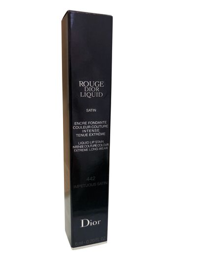 Dior Rouge Dior Liquid Satin 442 Impetuous Satin dresses the lips in red-hot color with a matte, metal or satiny effect. Provides intense long-wearing color regardless of the matte, satin or metal effect. The Rouge Dior Liquid formula is an expert blend of mineral wax, ultra-fine silica powder and oils that gives strength to color, while delivering perfect glide over the lips and a long-wearing result. Qualities once thought incompatible are now brought together in a Rouge Dior lipstick. For bolder color and longer wear, start by outlining the lips and filling them in with Dior Contour as a base. Apply Rouge Dior Liquid directly on the mouth using the fine, precise applicator.