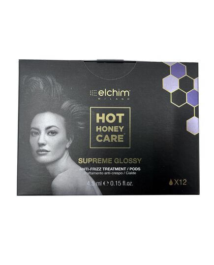 Elchim Milano Hot Honey Care Supreme Glossy Anti Frizz Treatment Pods enhances your Elchim hair dryer into a smoothing and shine enhancing machine. These nourishing and smoothing pods help to create smoother, shinier, silkier, and healthier hair with each use. Moisturize hair, protect it from breakage and dryness.