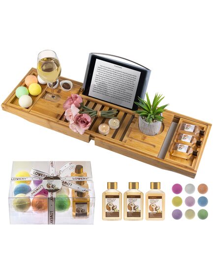 Lovery Premium Bamboo Bathtub Caddy Gift Set - Expandable Tray