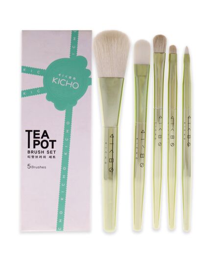 Tea Pot Brush Set by Kicho for Women - 5 Pc Blush Brush, Concealer Brush, Shadow Brush, Detailer Brush, Eyeliner Brush