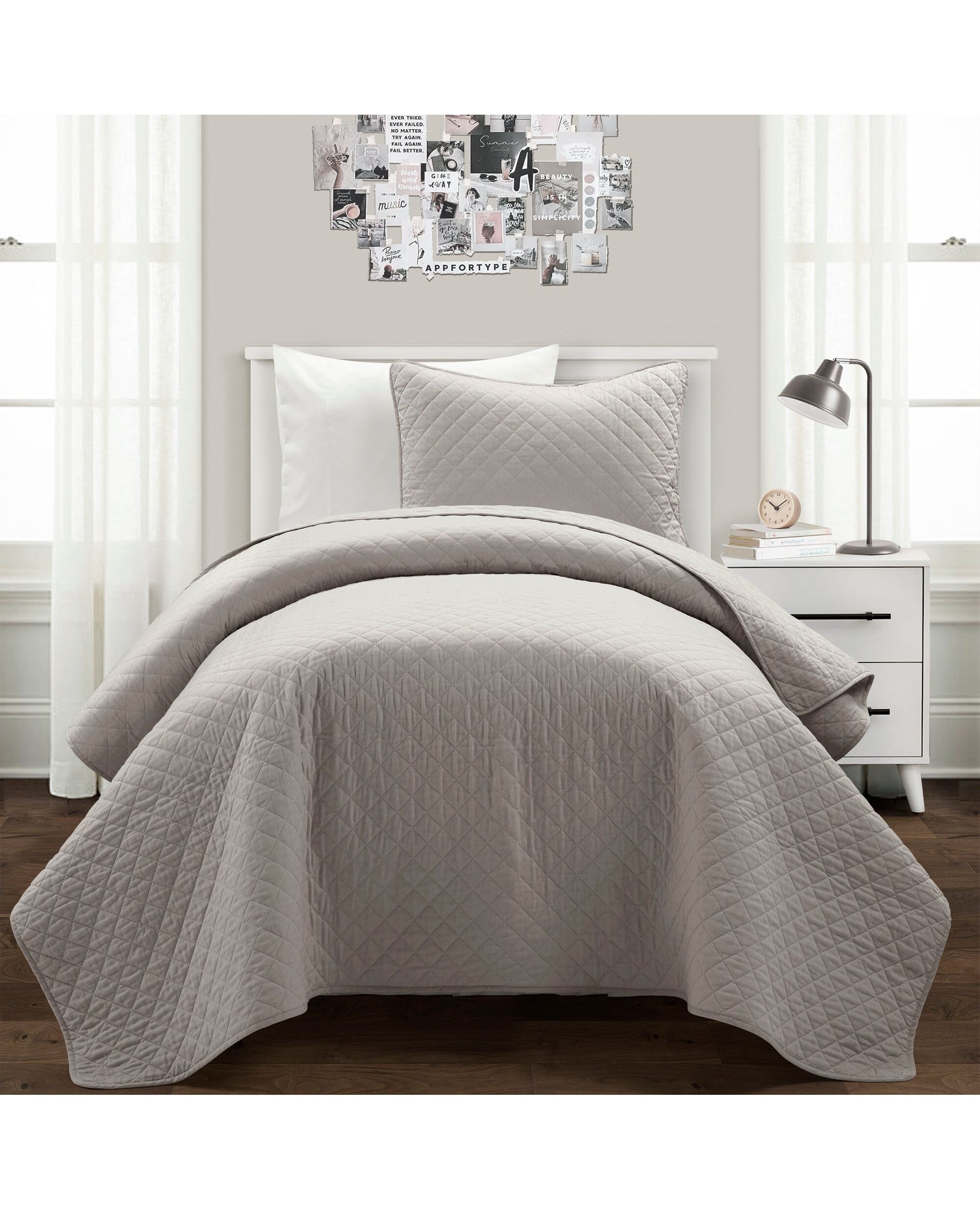 Ava Diamond Oversized Cotton Quilt Gray 2Pc Set Twin-Xl