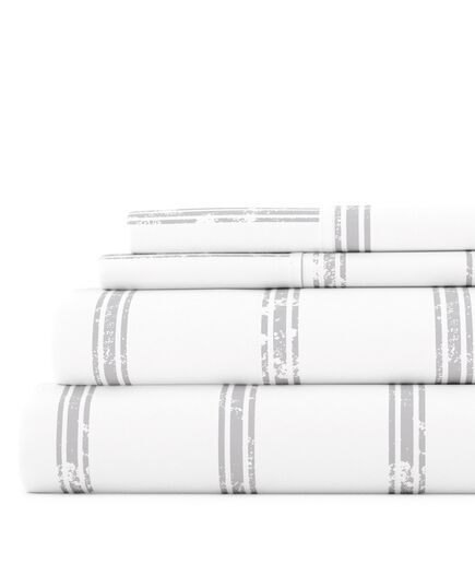 Distressed Line Light Gray Pattern Sheet Set Ultra Soft Microfiber Bedding, King