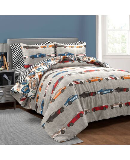 Lush Décor Race Cars Reversible Oversized With Printed Sheet Set Comforter Blue/Orange 5Pc Set Twin