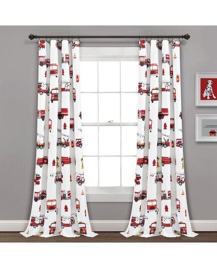 Make A Wish Fire Truck Window Curtain Panels Red/White 52X84 Set