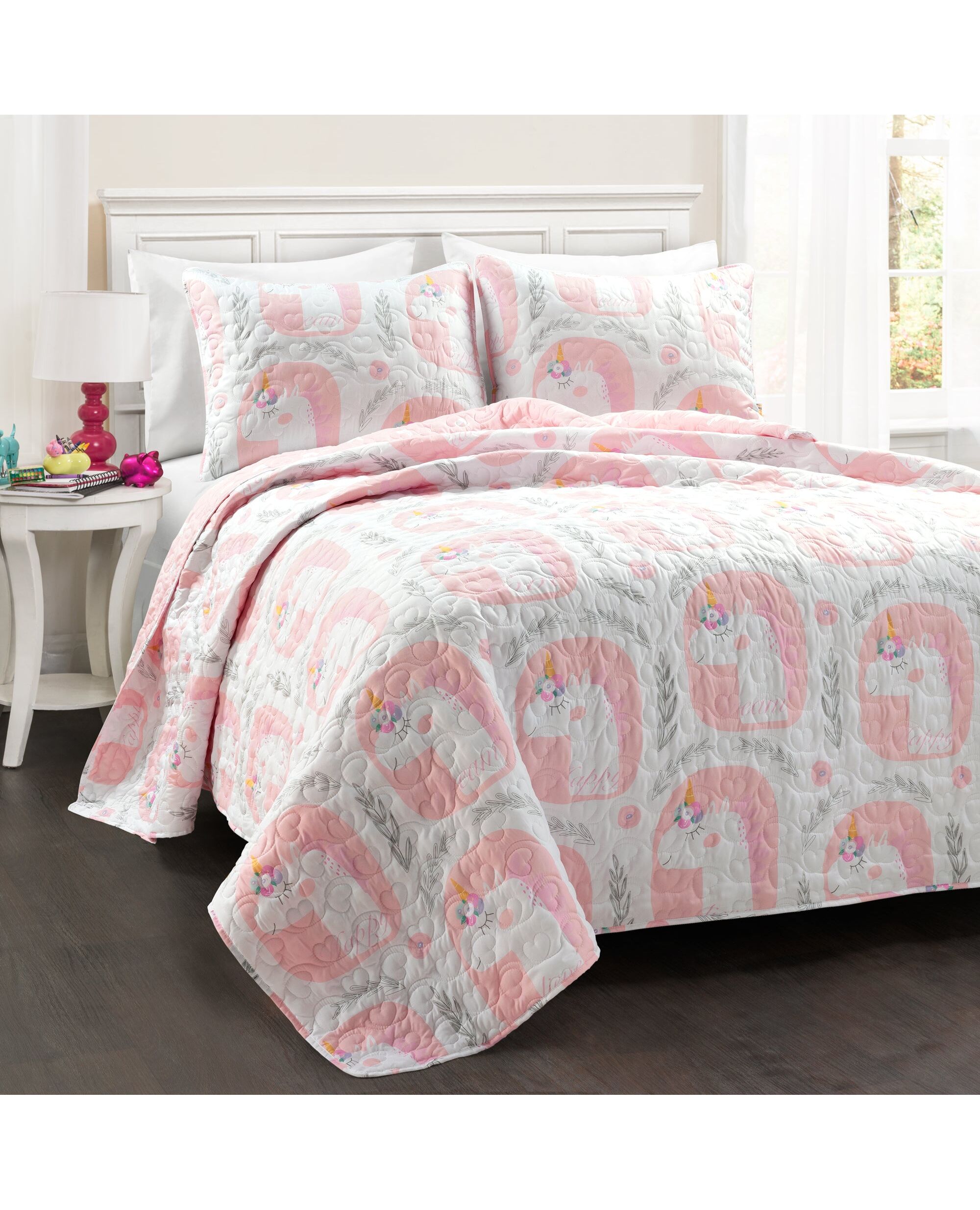 Make A Wish Inspirational Unicorn Reversible Oversized Quilt Pink 2Pc Set Twin