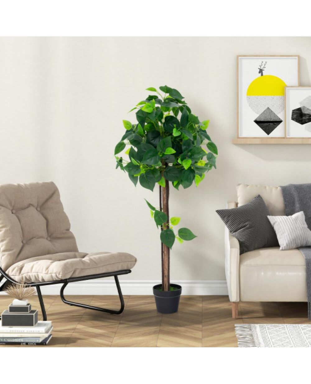 45 Inches Artificial Hydrangea Tree with Real Wood Trunk and Realistic Hydrangea Leaves