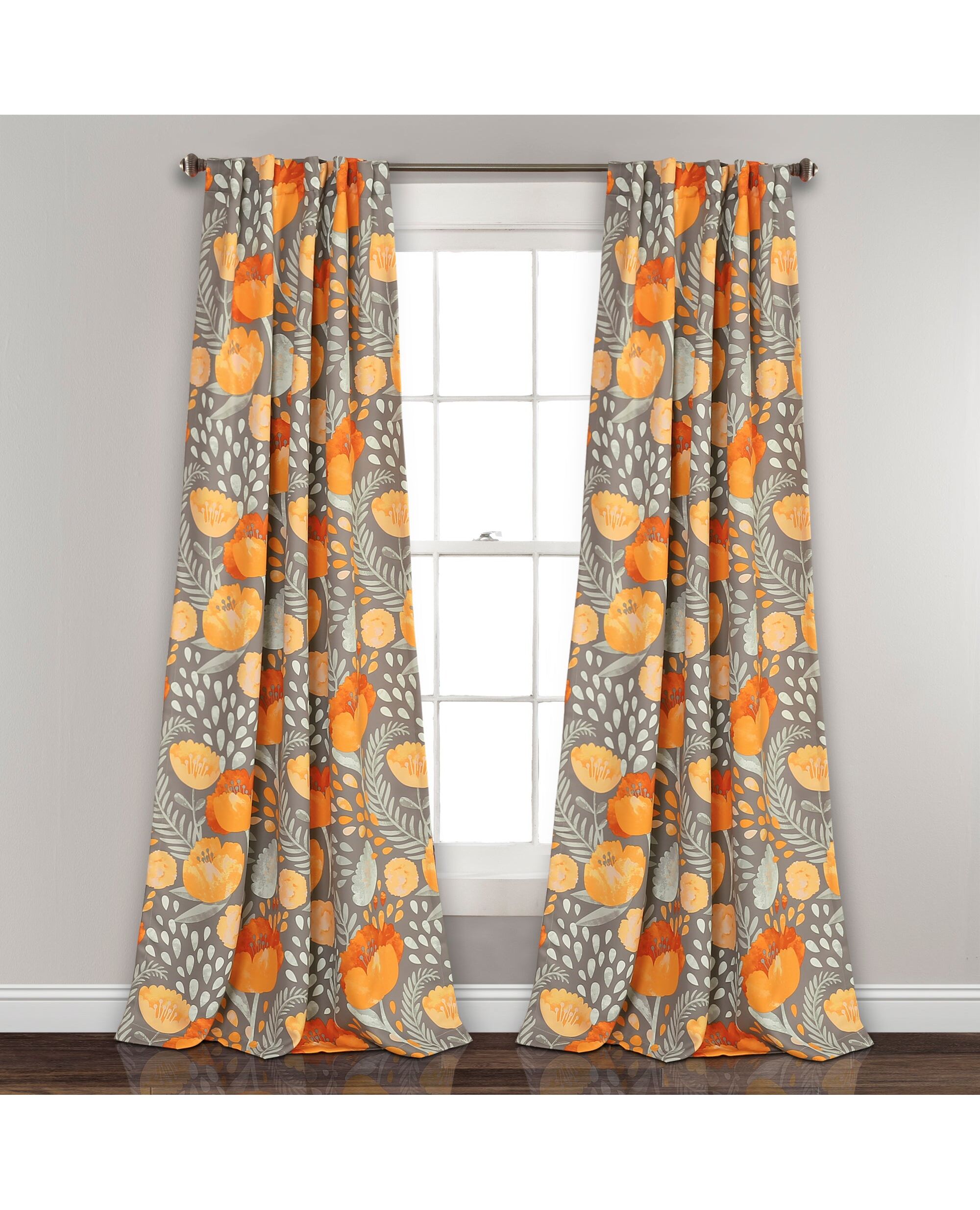 Poppy Garden Room Darkening Window Curtain Panels Yellow/Gray 52X108 Set