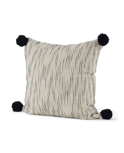 Beige And Midnight Pom Pom Square Accent Pillow Cover
