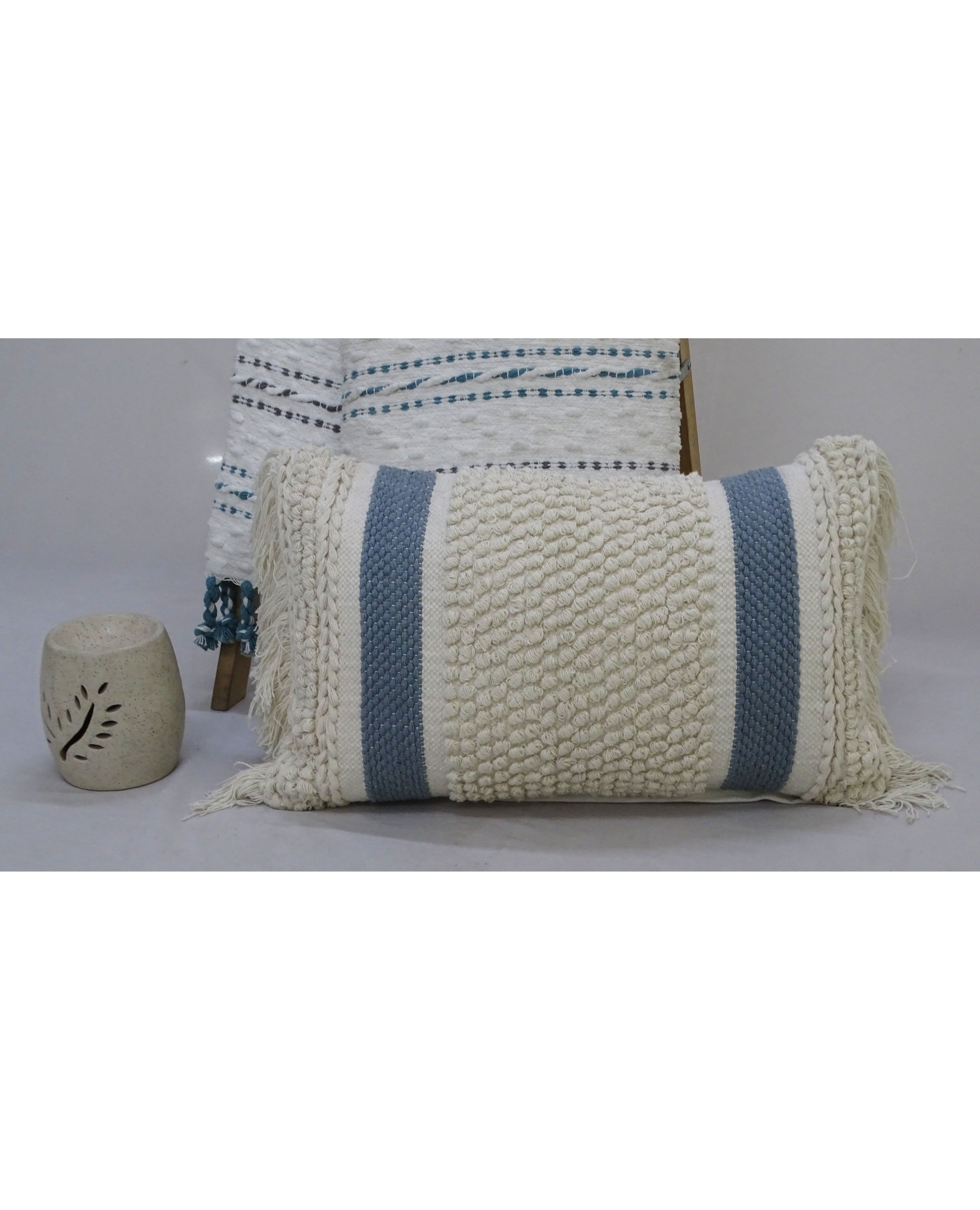 Decorative Striped Pillow with Loop Texture and Fringes