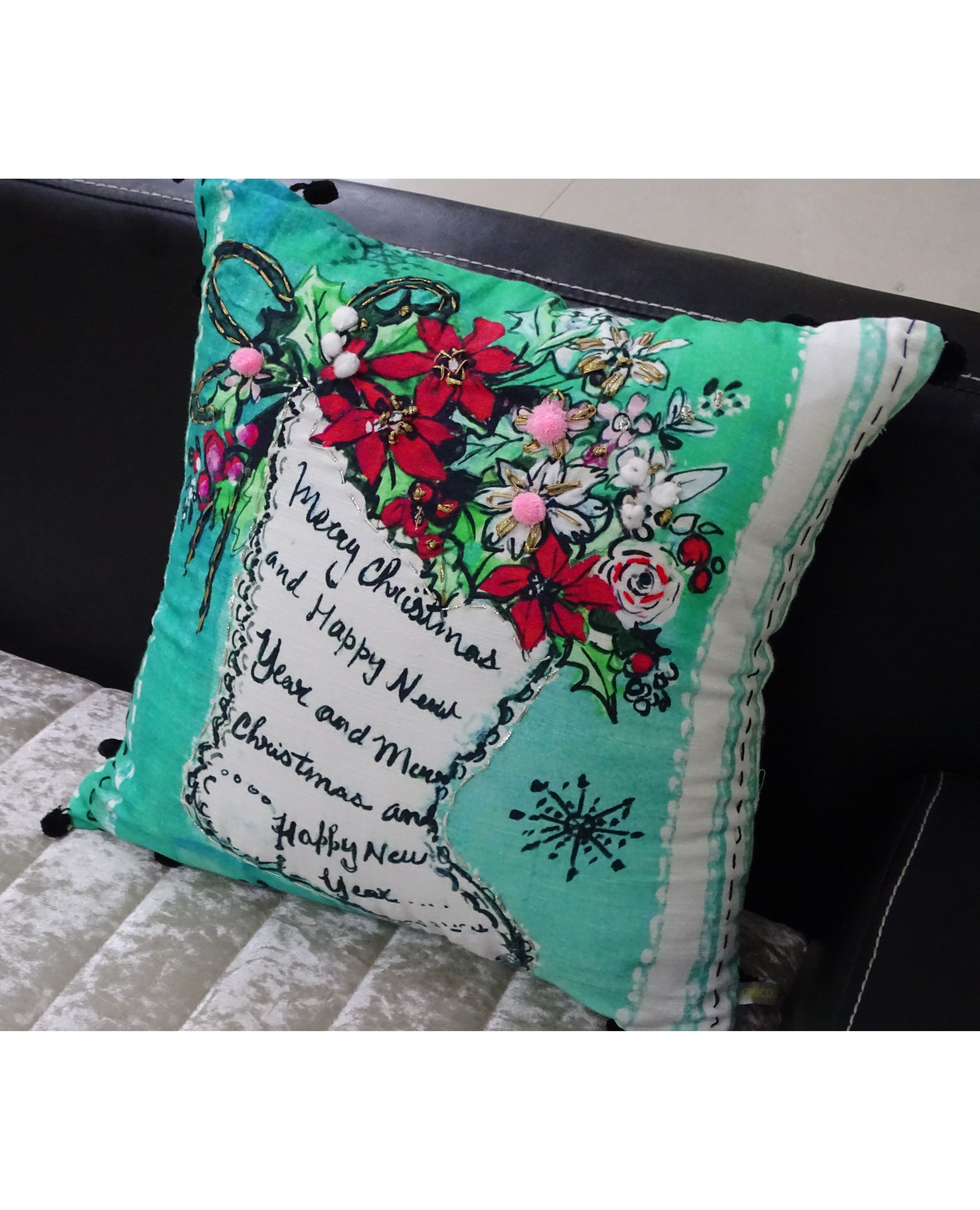 Hand Illustrated Christmas Holiday Pillow
