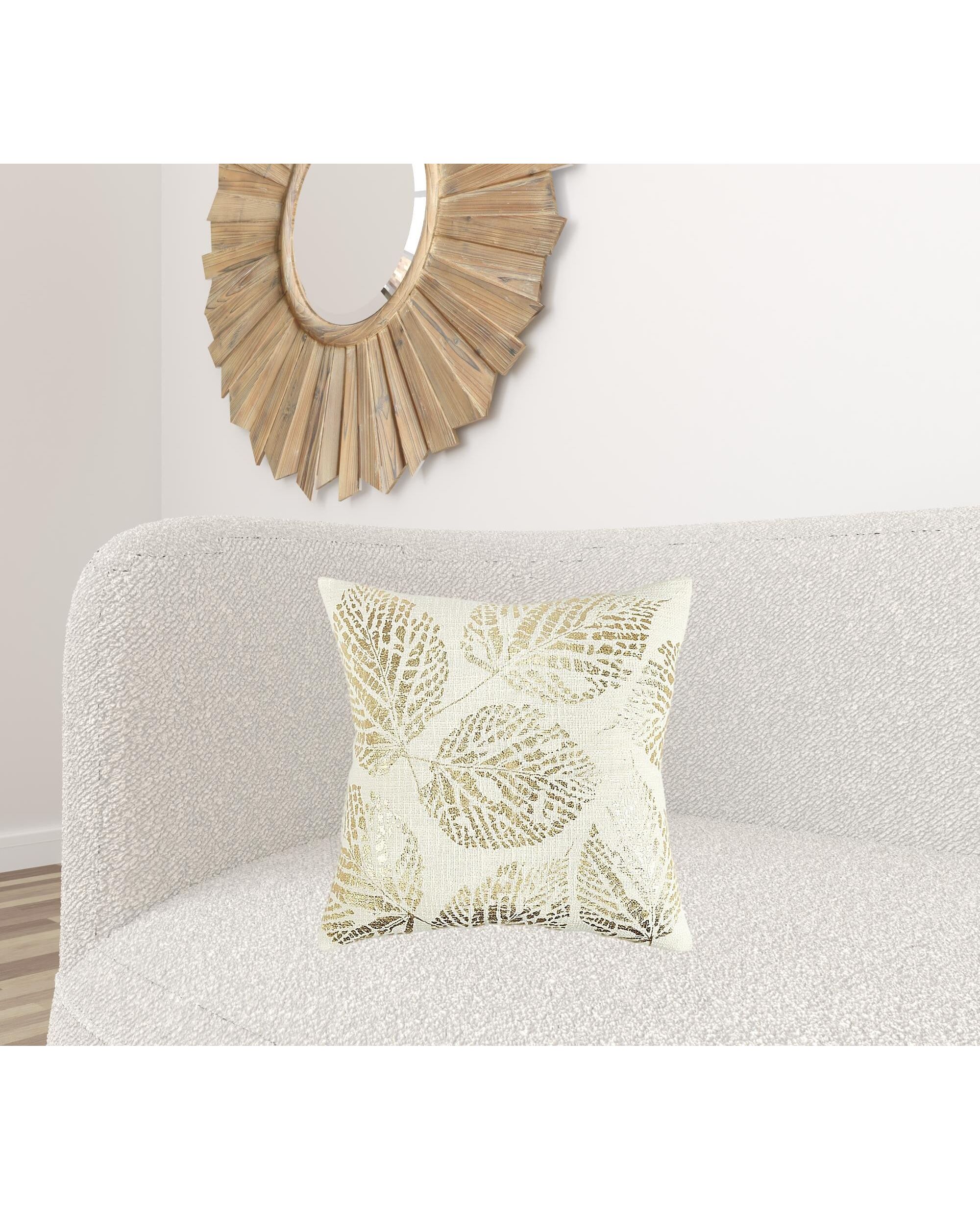 Ivory Gold Metallic Foil Leaf Pattern Throw Pillow