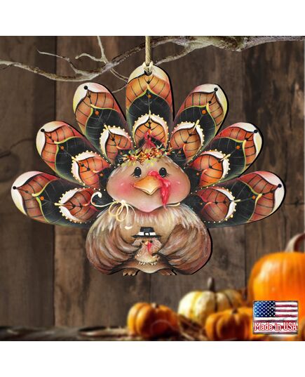 Designocracy Be Thankful Turkey Sitter Ornament Set of 2 by Jamie Mill Price