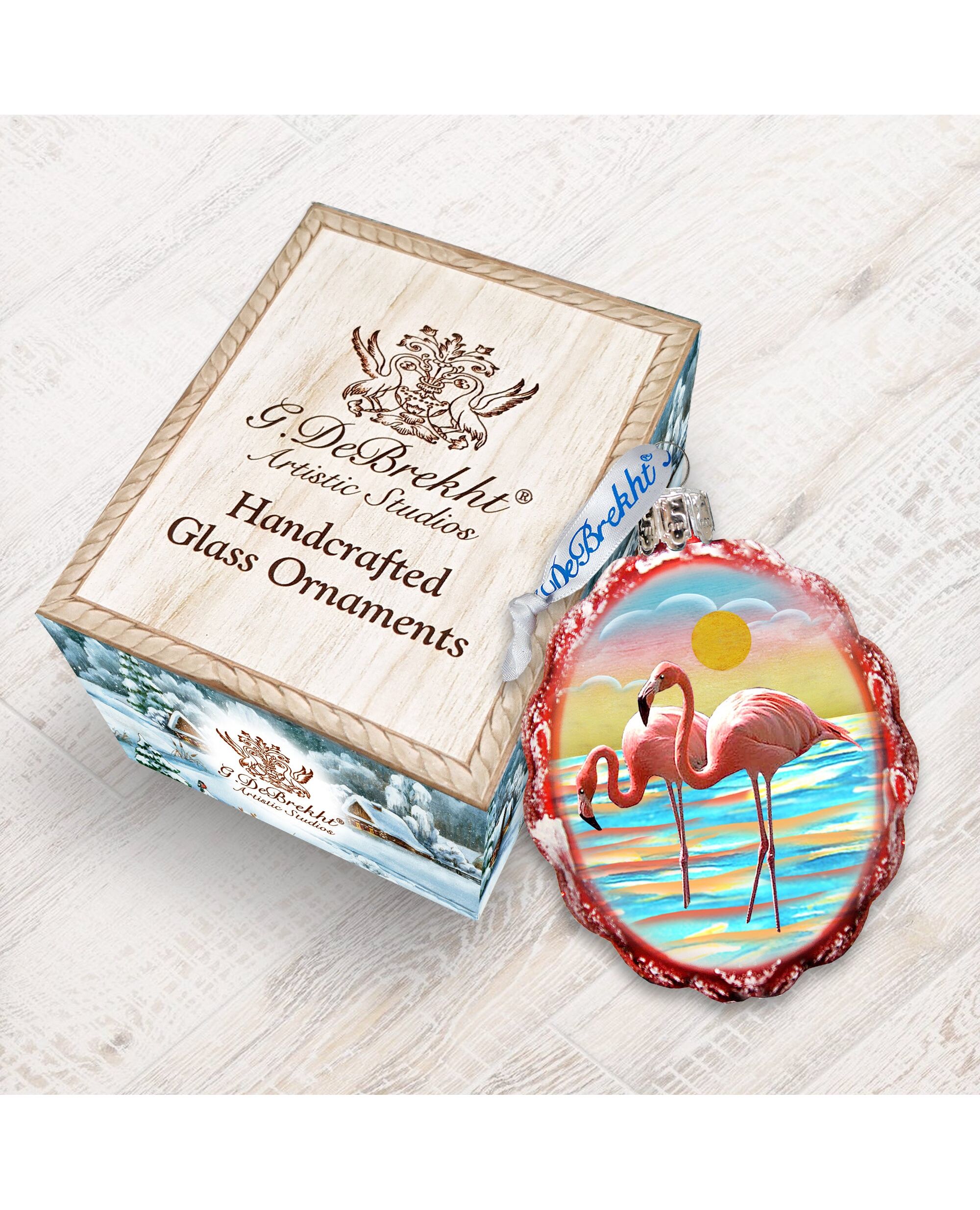 Designocracy Flamingo at Sunset Coastal Glass Ornament