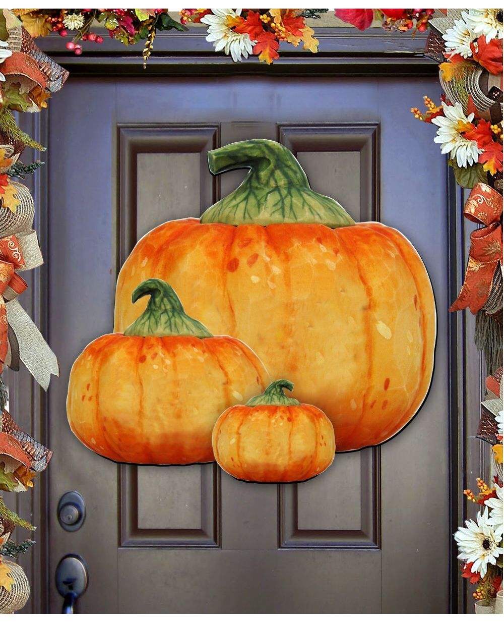 Designocracy Halloween Pumpkin Wood Ornaments Set of 2 G.DeBrekht Fall Collection