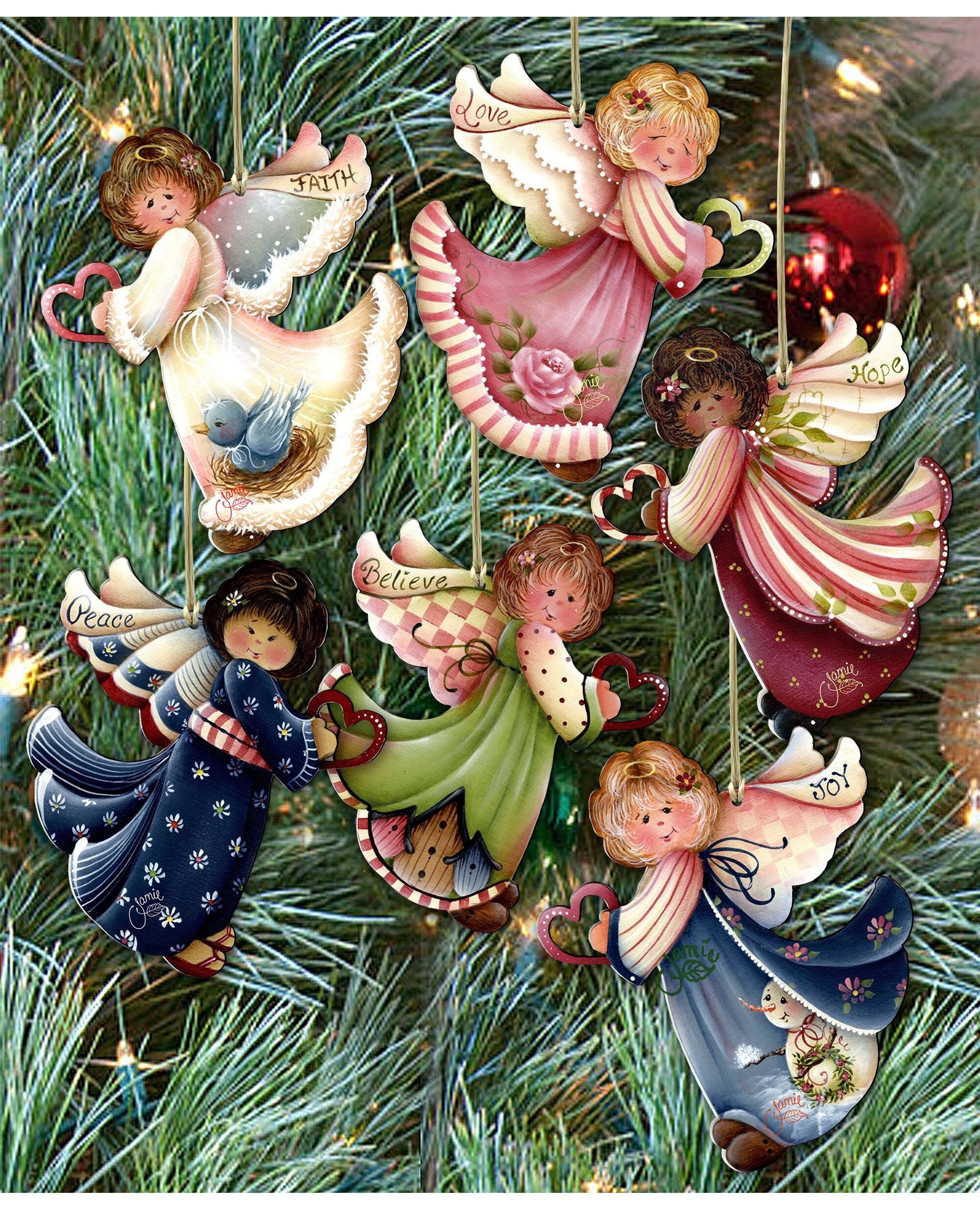 Designocracy Loving Angels Wooden Ornaments Set of 6 by Jamie Mills-Price