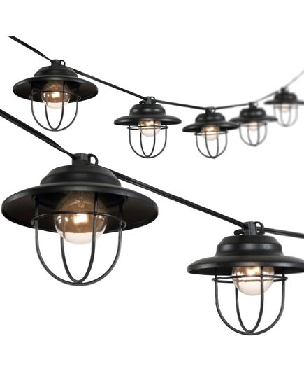 10-Light Indoor/Outdoor 10 ft. Rustic Farmhouse Incandescent G40 Metal Cage Shade String Lights
