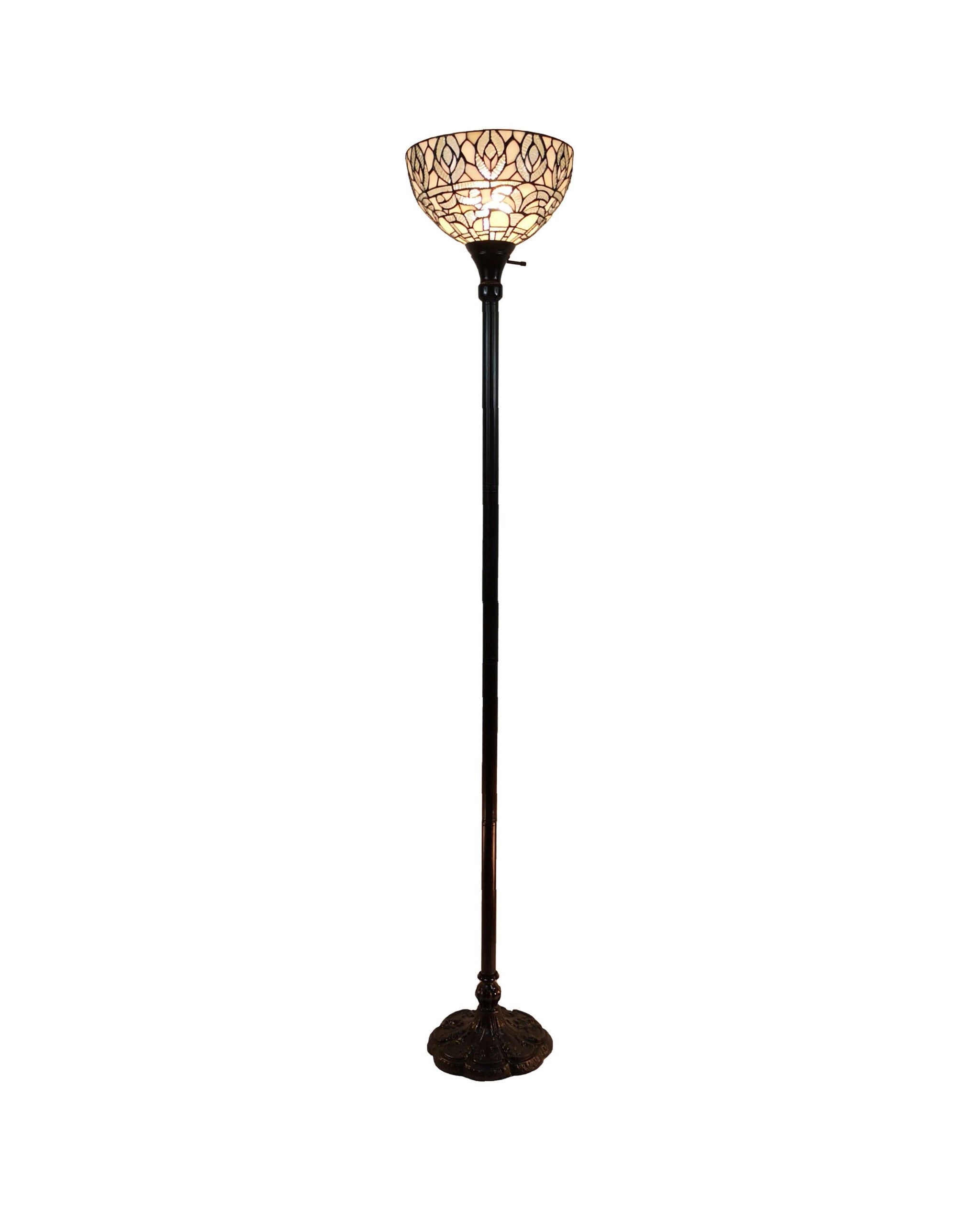 62" Brown Traditional Shaped Floor Lamp With White Peacock Feather Stained Glass Dome Shade