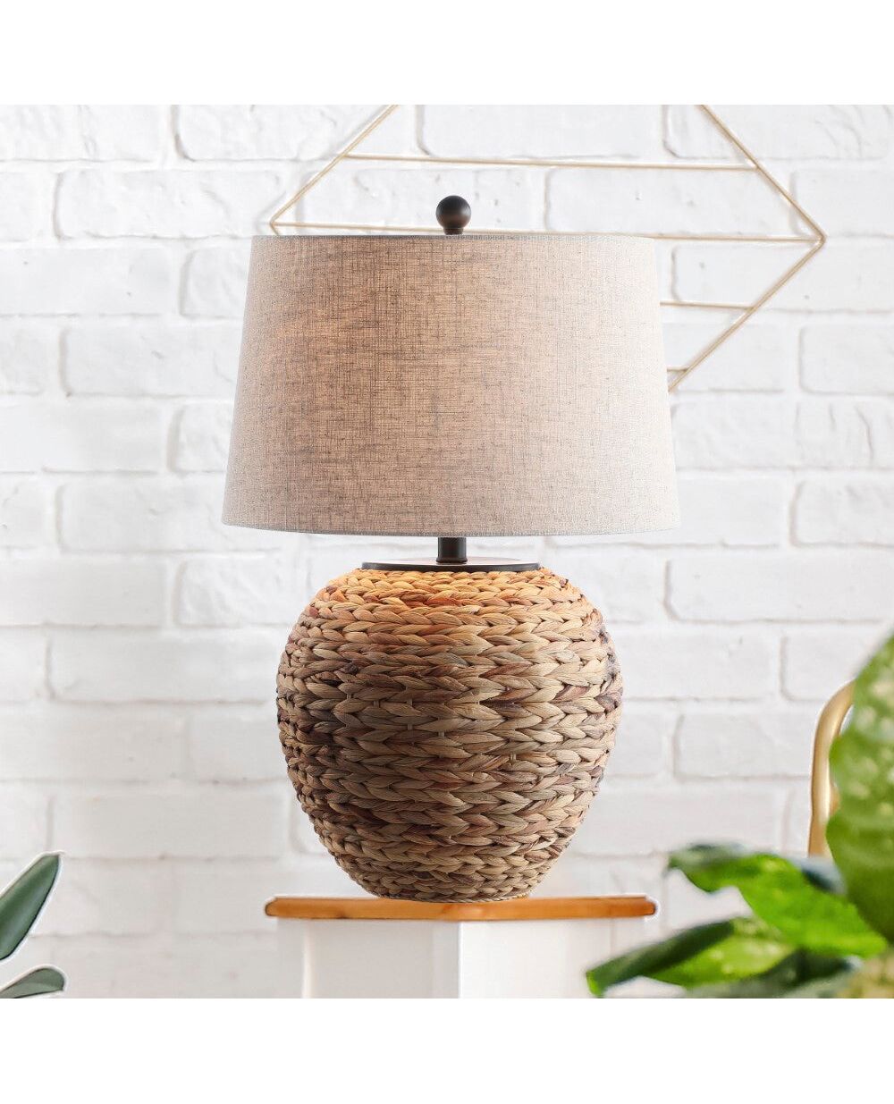 Whether your home is Coastal, Rustic, or Traditional, the classic shape of our basket lamp fits right in. Woven by hand of natural dried banana-leaf fibers on a sturdy metal frame. Topped with a modern drum shade covered in flax-toned linen.