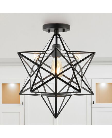 Ava 14.5" 1-Light Farmhouse Bohemian Iron/Glass LED Semi Flush Mount