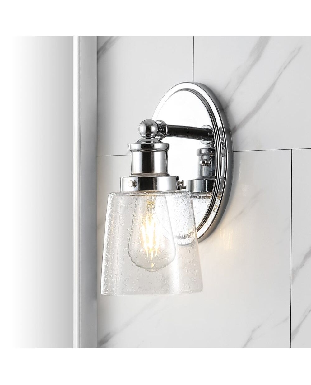 Elevate your urban apartment, cottage or rustic with our versatile take on a classic wall light. The industrial Edison-style LED bulb casts a warm glow, providing plenty of light. A seeded glass bell shade adds elegant vintage style to your bath vanity, or above a kitchen sink.