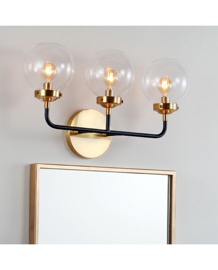 Bring a bit of space-age style to your home with this contemporary wall sconce. Inspired by Sputnik-style lighting fixtures, the wall light features three globe lights, each with a single bulb behind clear glass. Back plate and plates are finished in brushed brass while the arms are all in a sleek black finish.