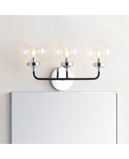 Bring a bit of space-age style to your home with this contemporary wall sconce. Inspired by Sputnik-style lighting fixtures, the wall light features three globe lights, each with a single bulb behind white glass. Back plate and plates are finished in brushed brass while the arms are all in a sleek black finish.