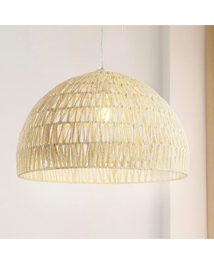 Modern design meets traditional craftsmanship in our ivory woven dome pendant. Made from paper wicker woven onto a sturdy metal frame, this ceiling fixture adds a Bohemian touch to your living room, bedroom, or dining room. Additionally, the drop is adjustable from 16" to 88", making it suitable for a ceiling of any height.