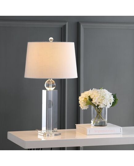 For those who love architectural details, this crystal column lamp's perfect proportions and solid crystal base create a perfect harmony of simplicity and interest. The slightly tapered cotton lampshade is a modern addition, and the silk-wrapped cord is so lovely, you'll want to leave it exposed. Best of all, this lamp is fabricated from premium materials -- 100% cotton fabric, crystal, and brass-plated electrical components -- making it a reliable choice for years to come.
