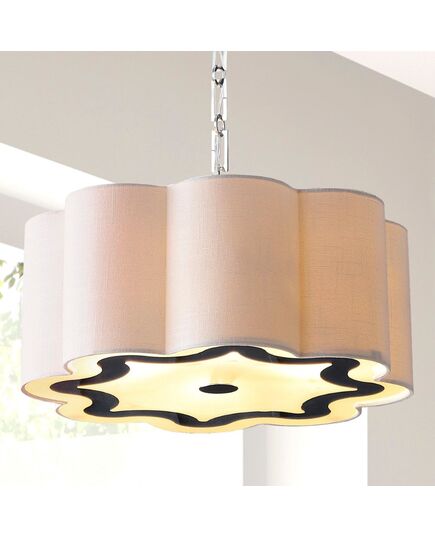 A scalloped linen shade gives our pendant chandelier a modern, cloud-like silhouette. Four included LED bulbs provide plenty of bright light, softened by a white diffuser panel. The chrome chain adds sparkle in a dining room, kitchen, living room, bedroom, or foyer.